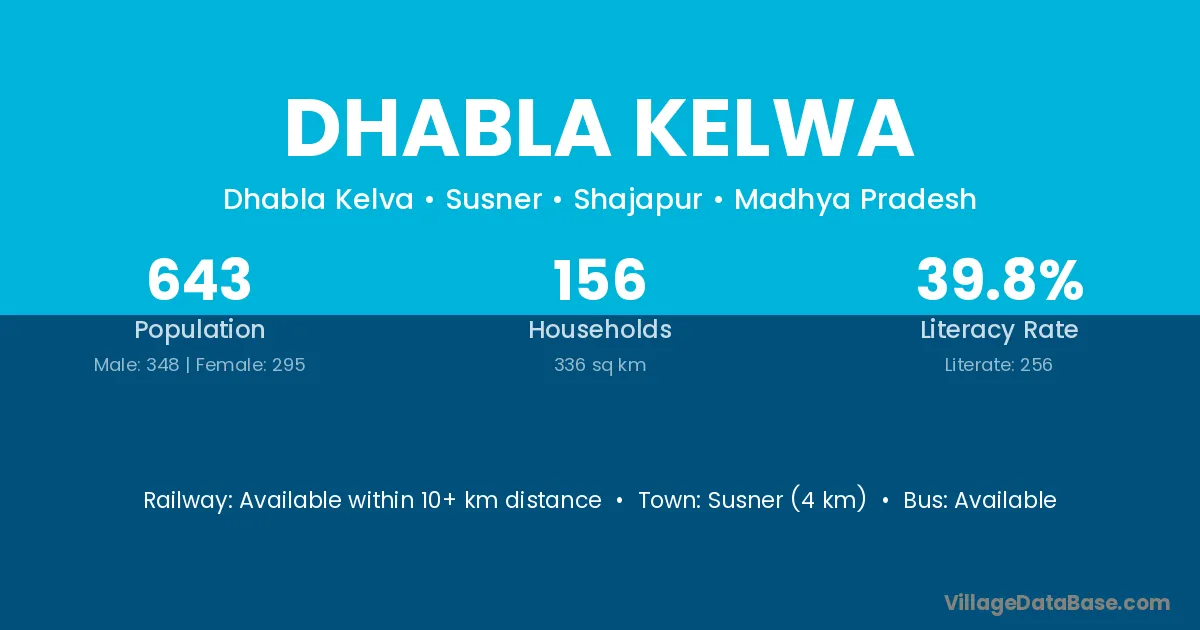 Dhabla Kelwa village has a total population of 643 people, of which 348 are males and 295 are females.