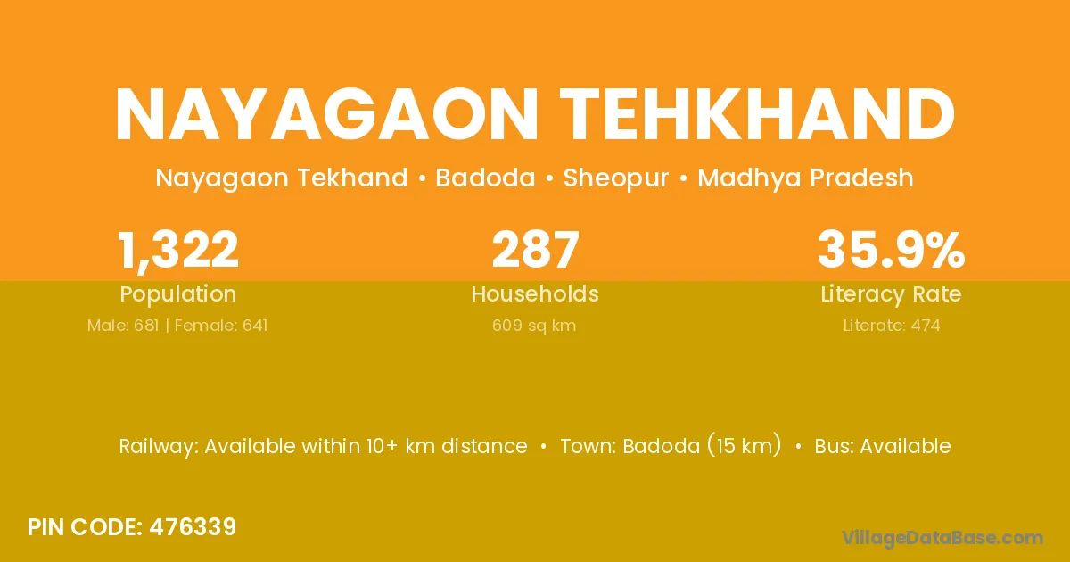 Badoda (15 km) is the nearest town to Nayagaon Tehkhand village for major economic activities and is located approximately 15 km away.