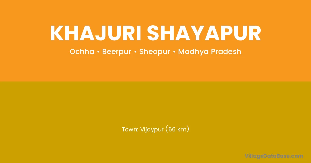 Vijaypur (66 km) is the nearest town to Khajuri Shayapur village for major economic activities and is located approximately 66 km away.