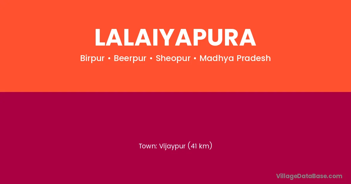Vijaypur (41 km) is the nearest town to Lalaiyapura village for major economic activities and is located approximately 41 km away.