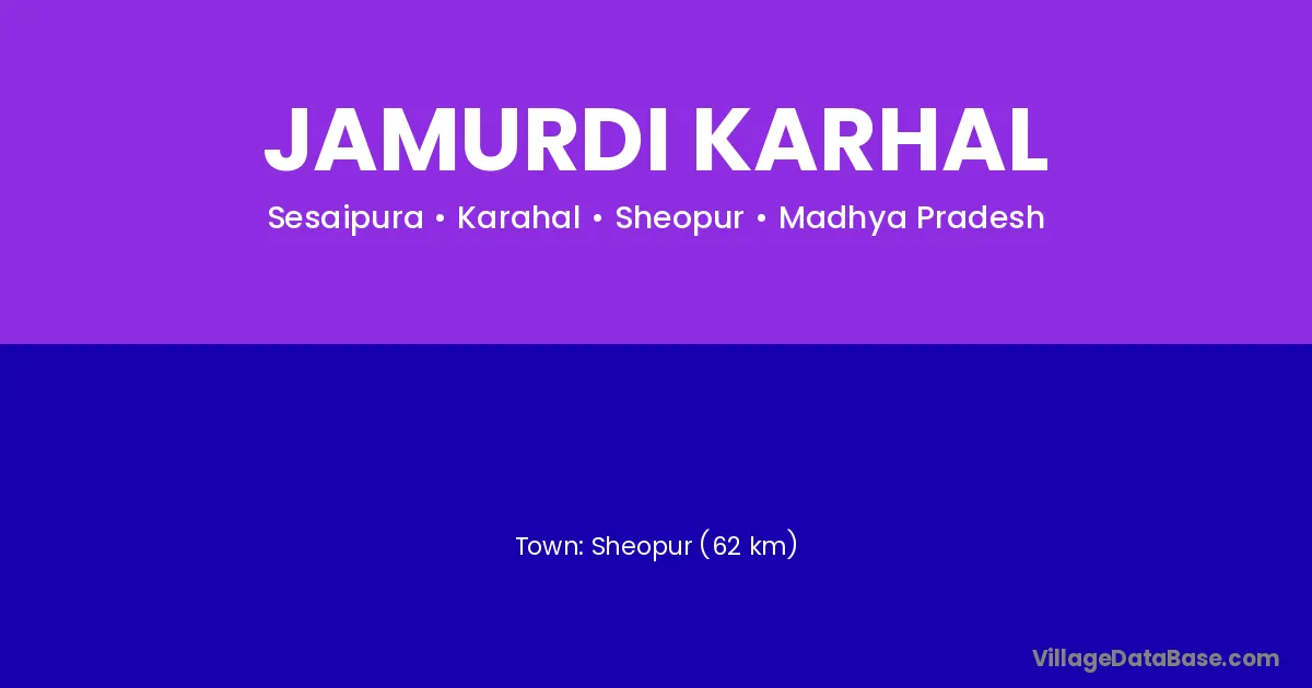 Sheopur (62 km) is the nearest town to Jamurdi Karhal village for major economic activities and is located approximately 62 km away.