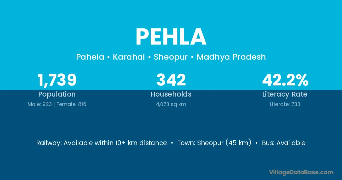 Sheopur (45 km) is the nearest town to Pehla village for major economic activities and is located approximately 45 km away.