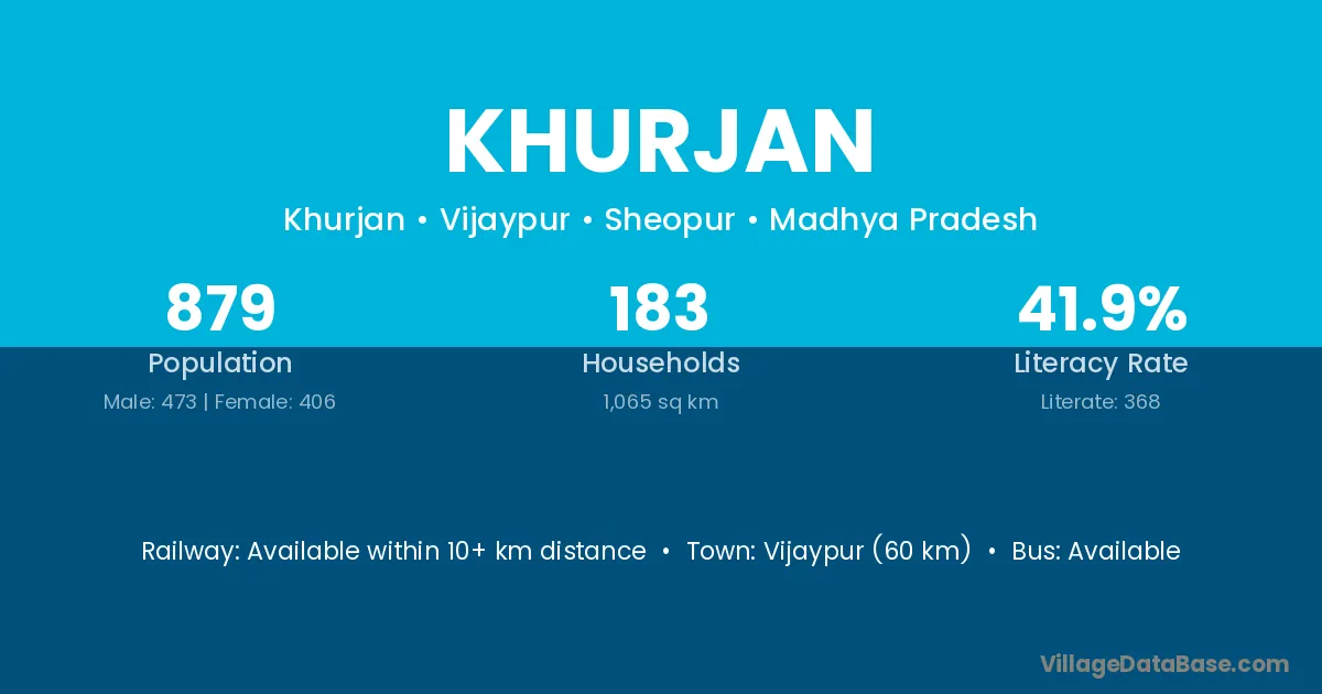 Vijaypur (60 km) is the nearest town to Khurjan village for major economic activities and is located approximately 60 km away.
