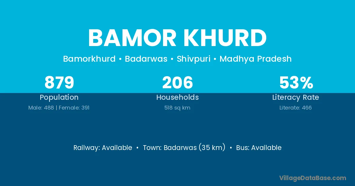 Badarwas (35 km) is the nearest town to Bamor Khurd village for major economic activities and is located approximately 35 km away.