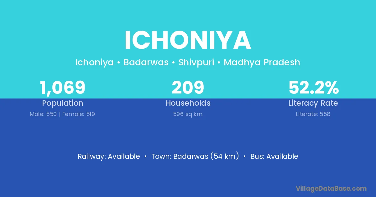Badarwas (54 km) is the nearest town to Ichoniya village for major economic activities and is located approximately 54 km away.