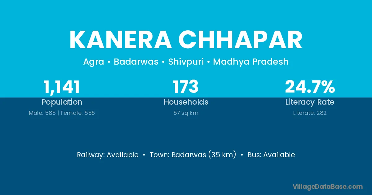 Badarwas (35 km) is the nearest town to Kanera Chhapar village for major economic activities and is located approximately 35 km away.