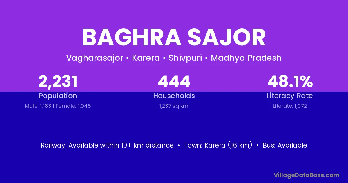 Karera (16 km) is the nearest town to Baghra Sajor village for major economic activities and is located approximately 16 km away.