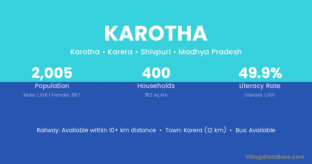Karera (12 km) is the nearest town to Karotha village for major economic activities and is located approximately 12 km away.