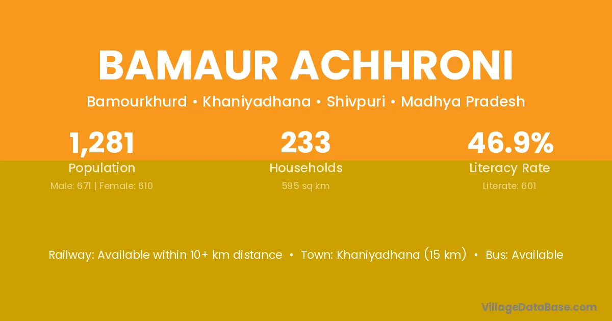 Khaniyadhana (15 km) is the nearest town to Bamaur Achhroni village for major economic activities and is located approximately 15 km away.