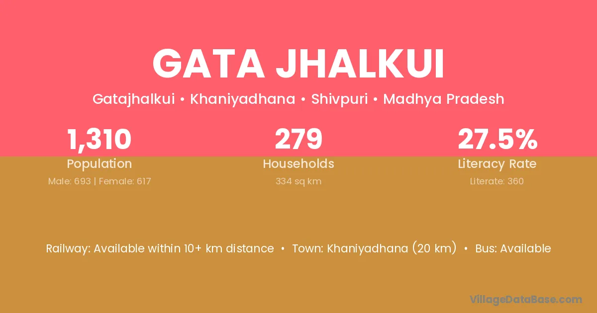 Gata Jhalkui village has a total population of 1,310 people, of which 693 are males and 617 are females.