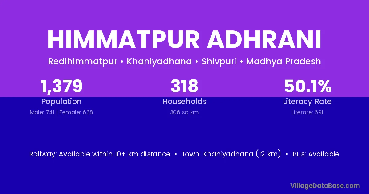Himmatpur Adhrani village is located in the Khaniyadhana Tehsil of the Shivpuri district in Madhya Pradesh .