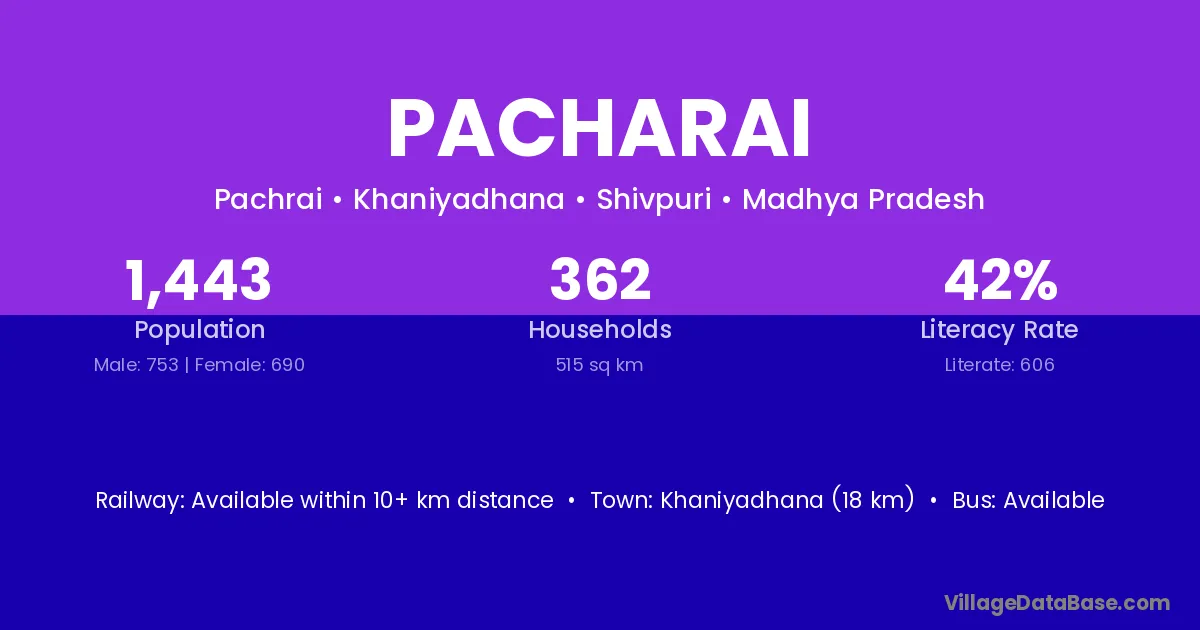 Pacharai village is located in the Khaniyadhana Tehsil of the Shivpuri district in Madhya Pradesh .