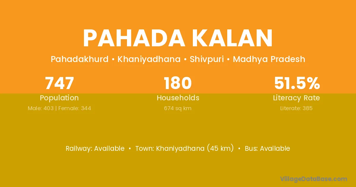 Khaniyadhana (45 km) is the nearest town to Pahada Kalan village for major economic activities and is located approximately 45 km away.