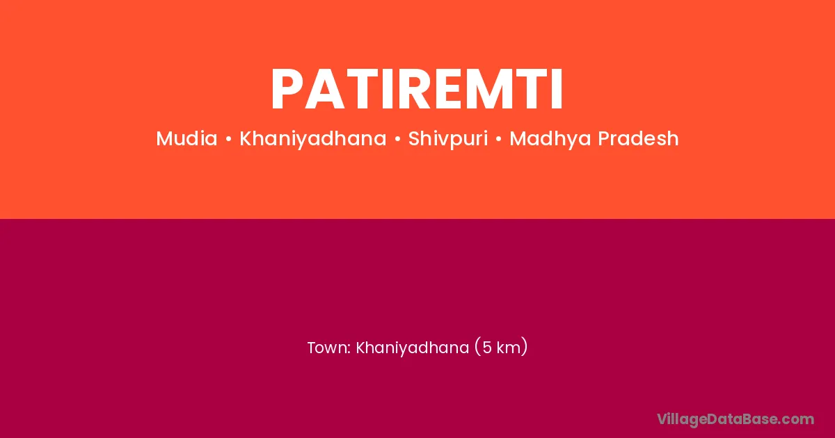 Khaniyadhana (5 km) is the nearest town to Patiremti village for major economic activities and is located approximately 5 km away.