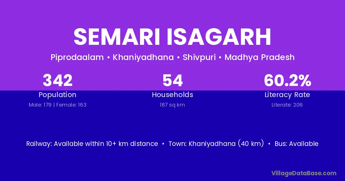 Khaniyadhana (40 km) is the nearest town to Semari Isagarh village for major economic activities and is located approximately 40 km away.