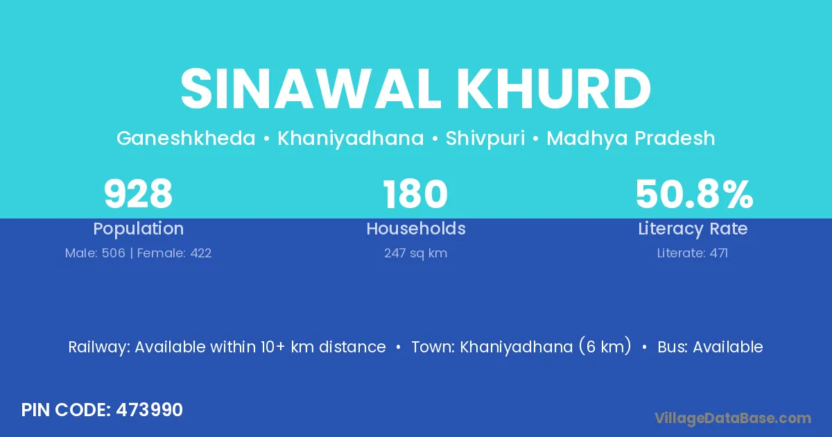 Khaniyadhana (6 km) is the nearest town to Sinawal Khurd village for major economic activities and is located approximately 6 km away.