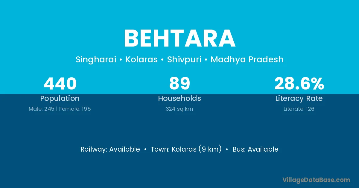 Kolaras (9 km) is the nearest town to Behtara village for major economic activities and is located approximately 9 km away.