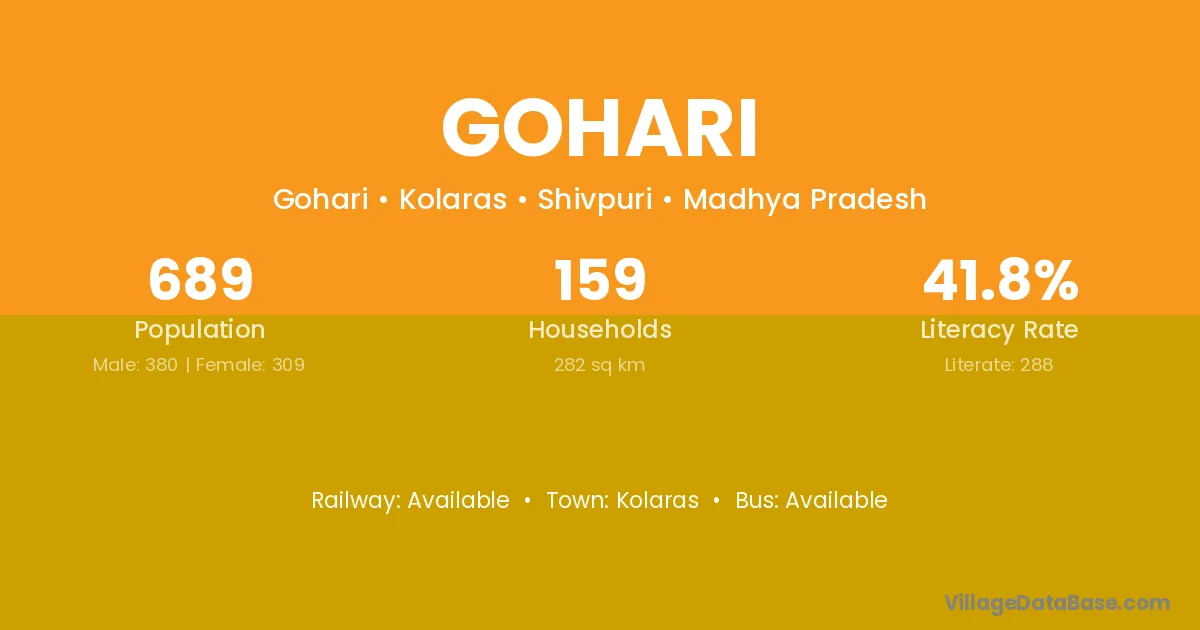 Gohari village has a total population of 689 people, of which 380 are males and 309 are females.