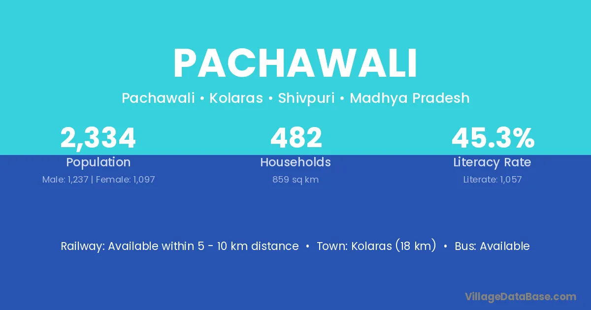 Kolaras (18 km) is the nearest town to Pachawali village for major economic activities and is located approximately 18 km away.