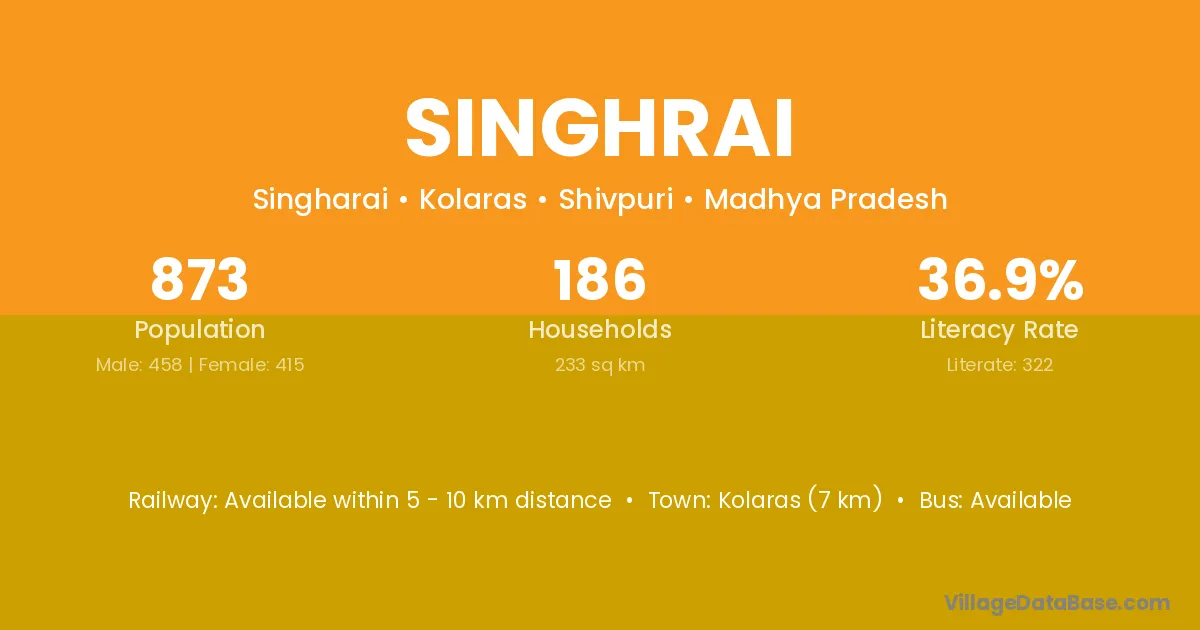 Kolaras (7 km) is the nearest town to Singhrai village for major economic activities and is located approximately 7 km away.