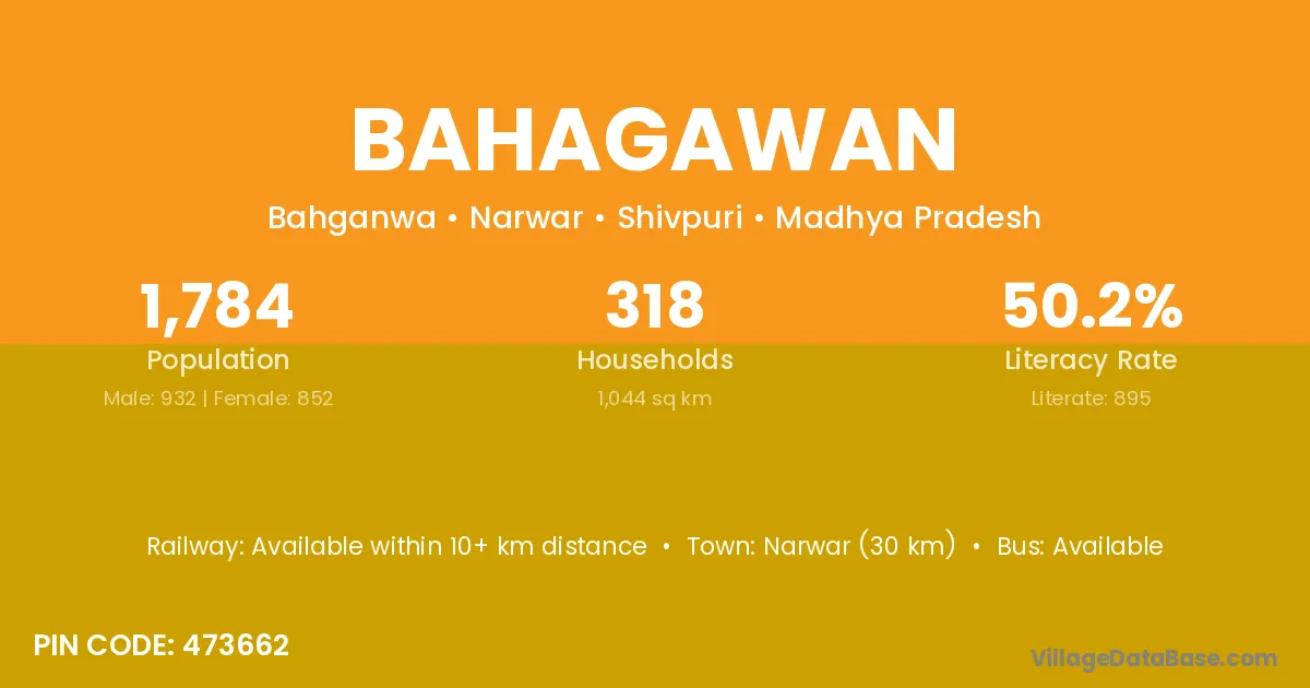 Narwar (30 km) is the nearest town to Bahagawan village for major economic activities and is located approximately 30 km away.