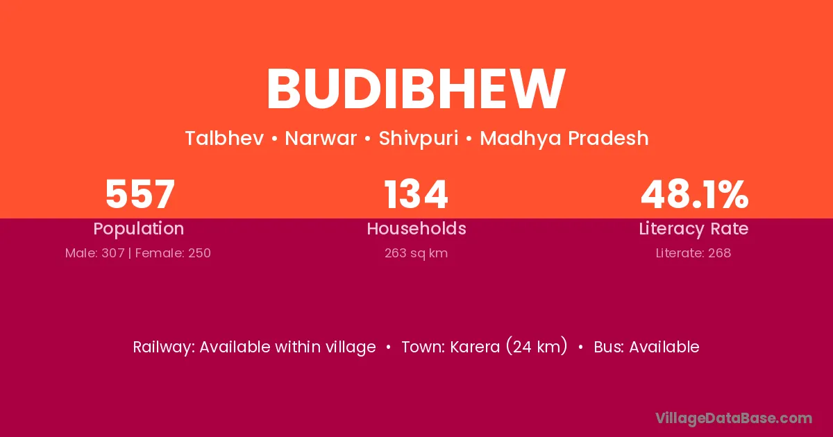 Budibhew village has a total population of 557 people, of which 307 are males and 250 are females.