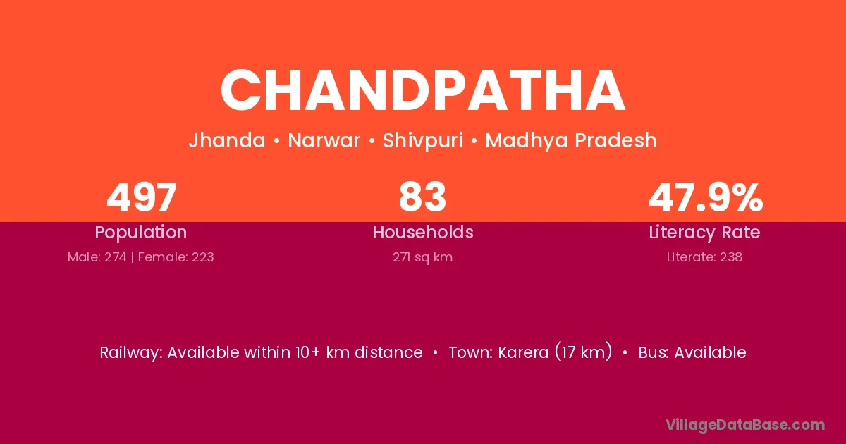 Karera (17 km) is the nearest town to Chandpatha village for major economic activities and is located approximately 17 km away.