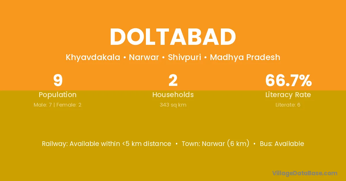 Narwar (6 km) is the nearest town to Doltabad village for major economic activities and is located approximately 6 km away.