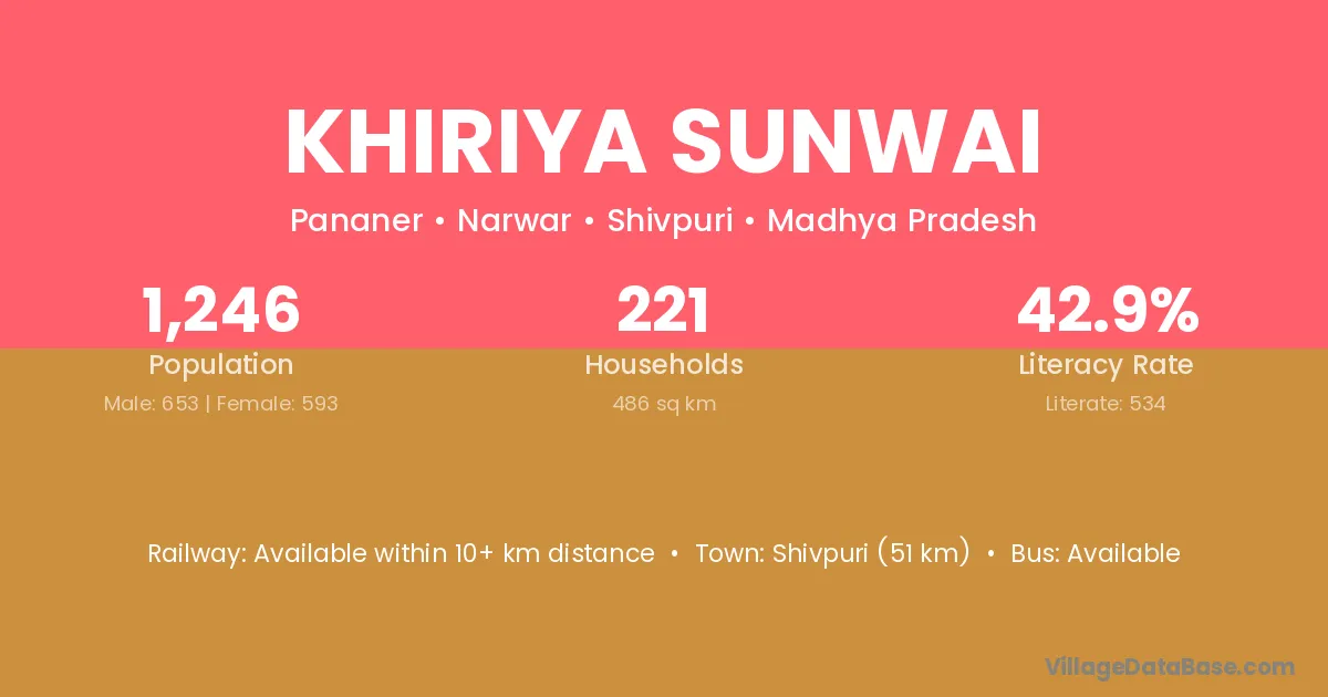 Shivpuri (51 km) is the nearest town to Khiriya Sunwai village for major economic activities and is located approximately 51 km away.