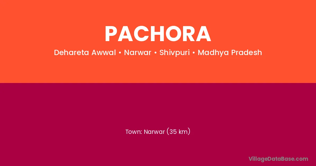 Narwar (35 km) is the nearest town to Pachora village for major economic activities and is located approximately 35 km away.