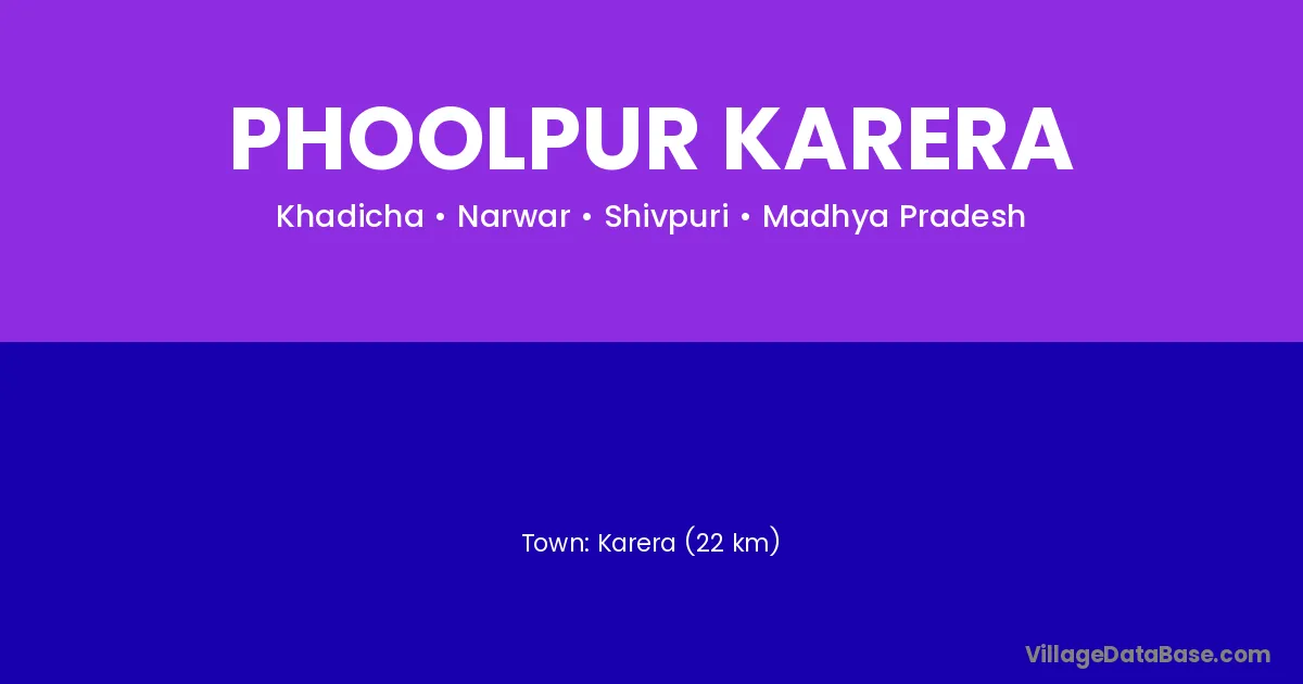 Karera (22 km) is the nearest town to Phoolpur Karera village for major economic activities and is located approximately 22 km away.