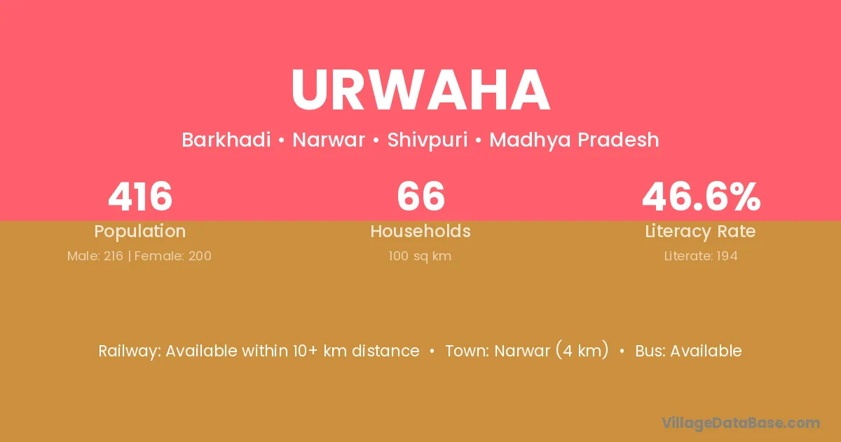 Narwar (4 km) is the nearest town to Urwaha village for major economic activities and is located approximately 4 km away.