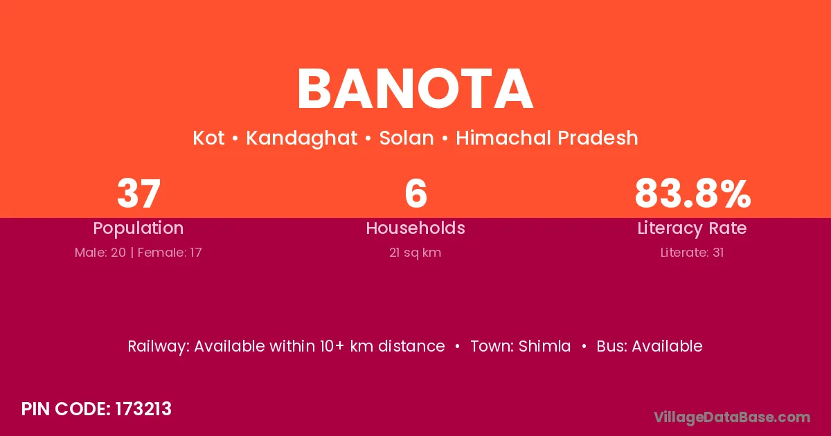 Pichhore (20 km) is the nearest town to Banota village for major economic activities and is located approximately 20 km away.