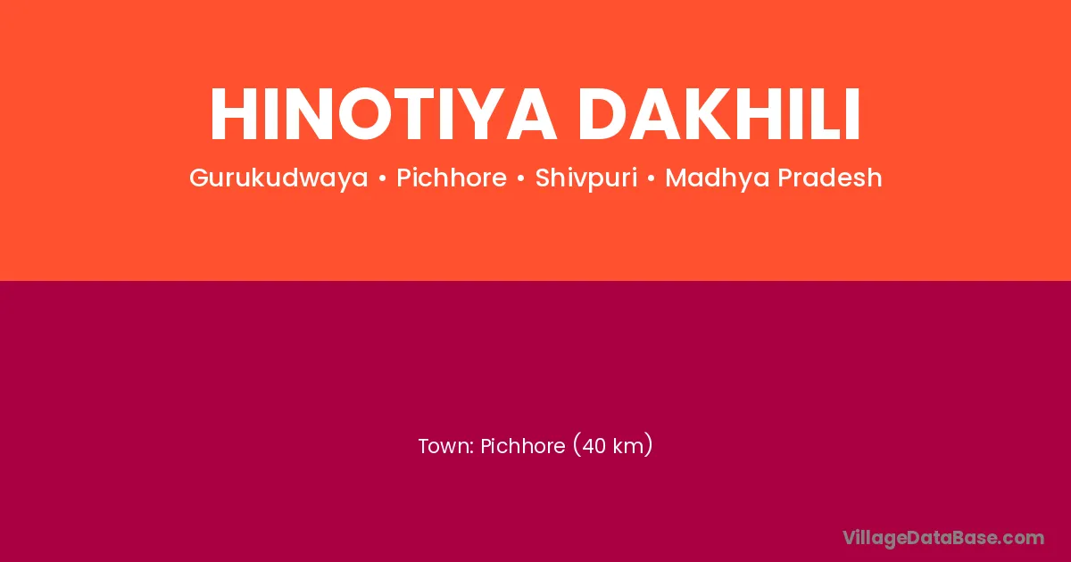 Pichhore (40 km) is the nearest town to Hinotiya Dakhili village for major economic activities and is located approximately 40 km away.