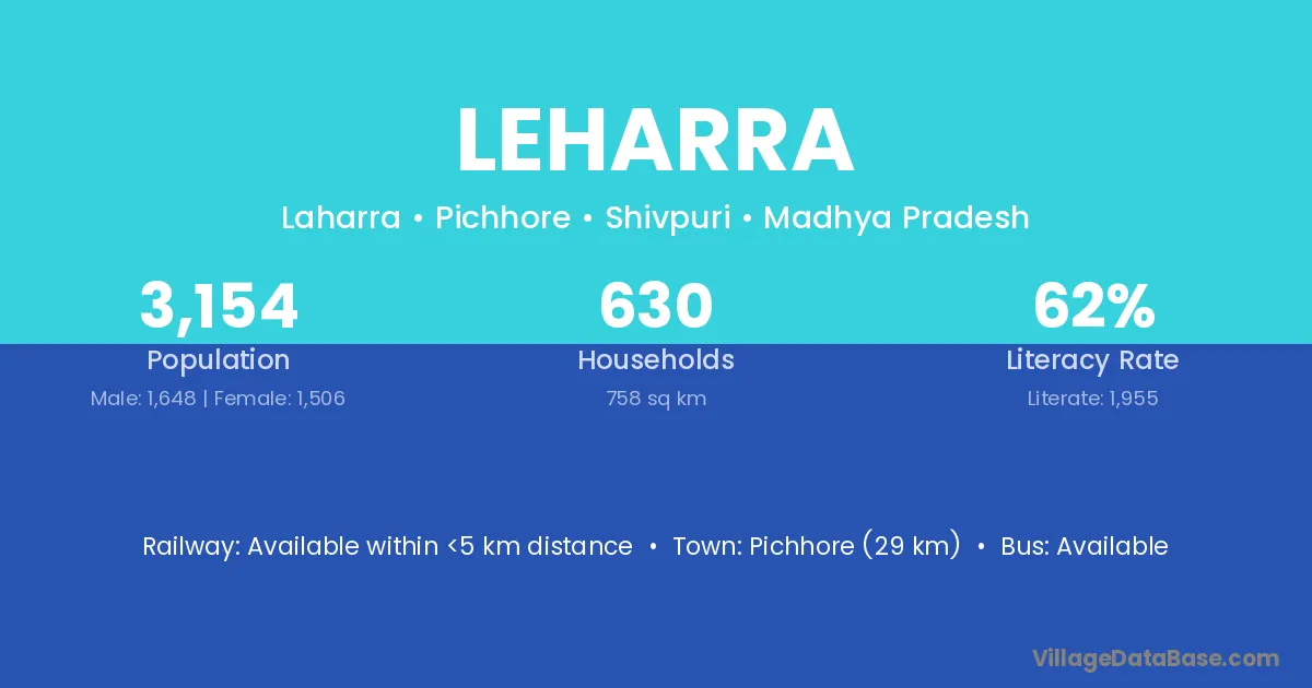 Pichhore (29 km) is the nearest town to Leharra village for major economic activities and is located approximately 29 km away.