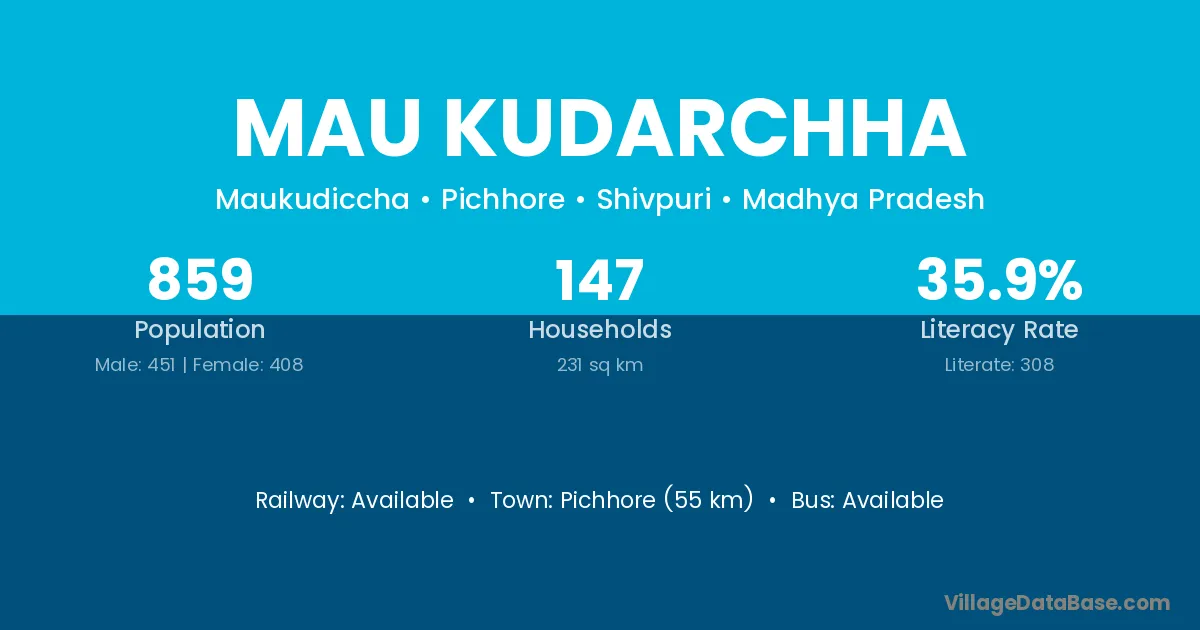 Pichhore (55 km) is the nearest town to Mau Kudarchha village for major economic activities and is located approximately 55 km away.