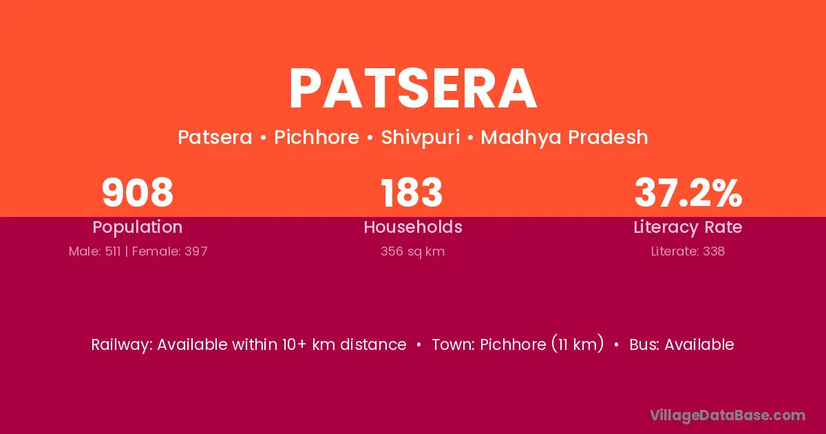 Pichhore (11 km) is the nearest town to Patsera village for major economic activities and is located approximately 11 km away.