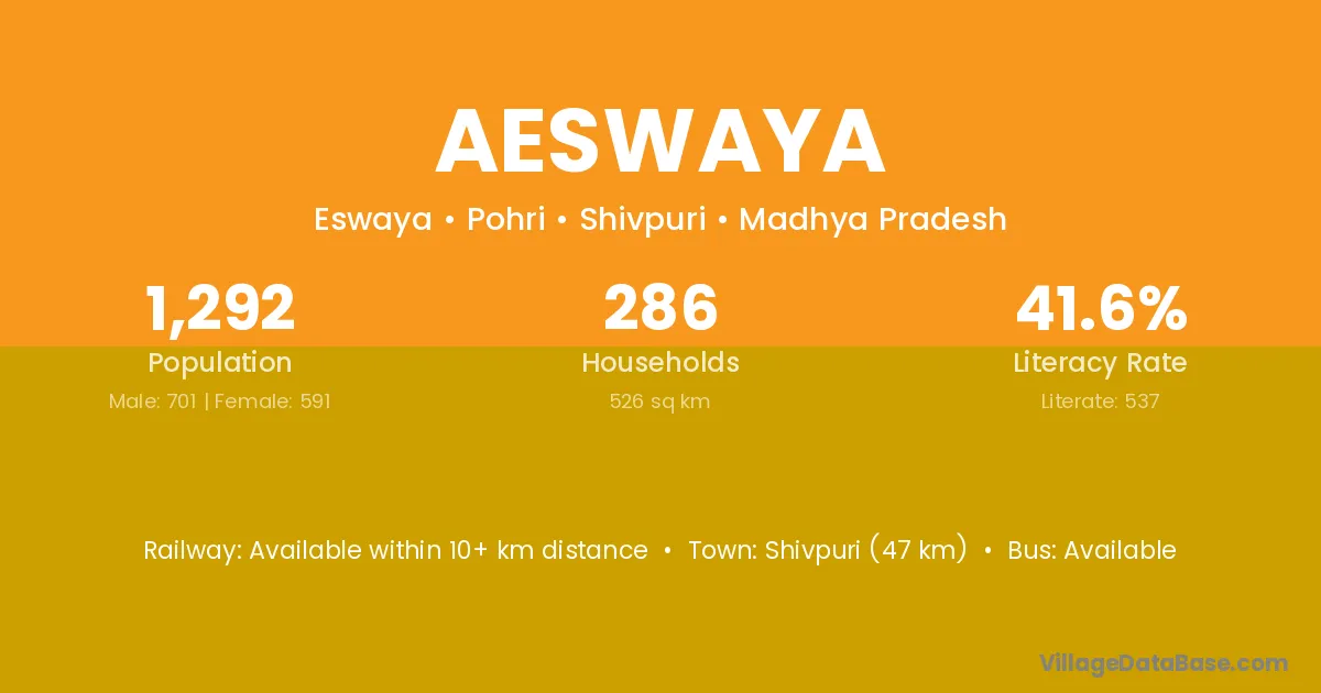 Shivpuri (47 km) is the nearest town to Aeswaya village for major economic activities and is located approximately 47 km away.