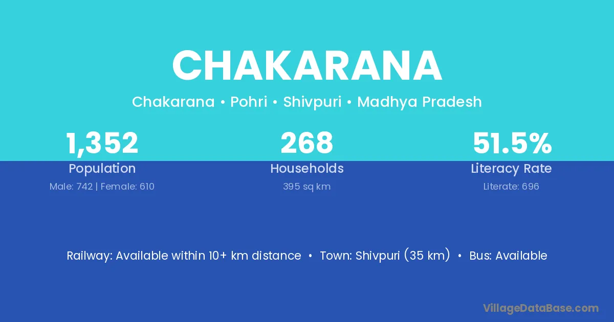 Shivpuri (35 km) is the nearest town to Chakarana village for major economic activities and is located approximately 35 km away.