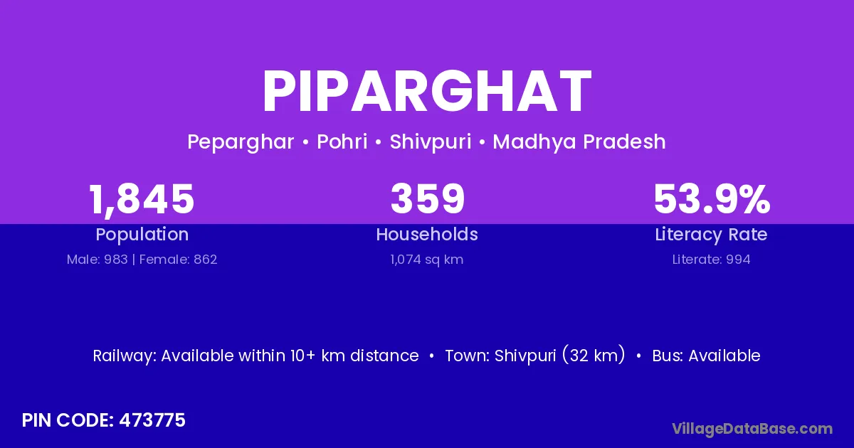 Shivpuri (32 km) is the nearest town to Piparghat village for major economic activities and is located approximately 32 km away.