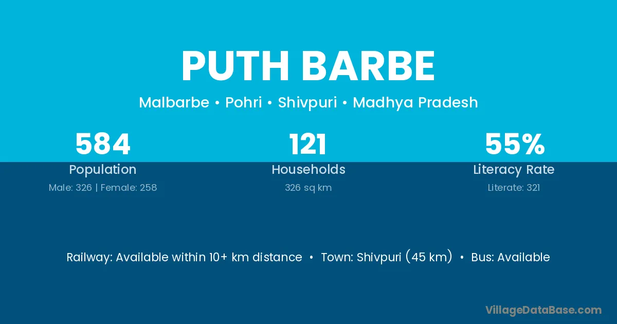 Shivpuri (45 km) is the nearest town to Puth Barbe village for major economic activities and is located approximately 45 km away.