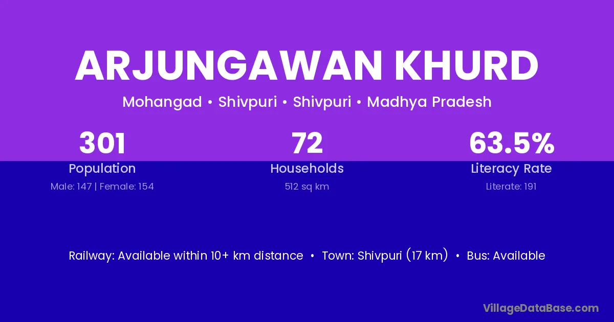 Shivpuri (17 km) is the nearest town to Arjungawan Khurd village for major economic activities and is located approximately 17 km away.