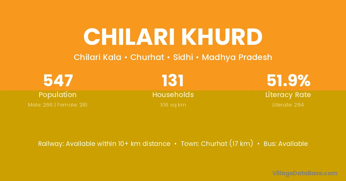 Chilari Khurd village has a total population of 547 people, of which 266 are males and 281 are females.