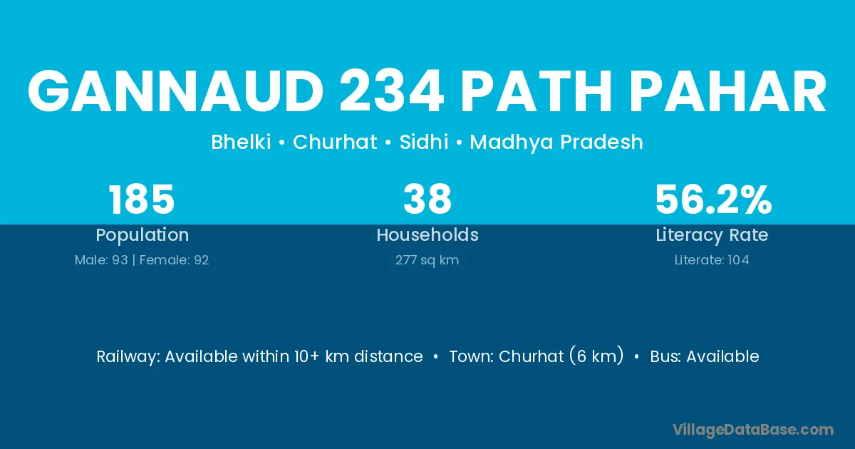Gannaud 234 Path Pahar village has a total population of 185 people, of which 93 are males and 92 are females.