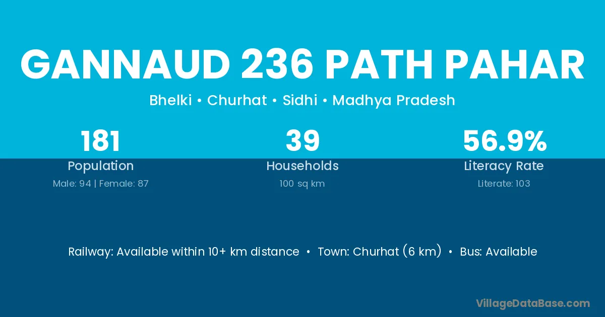 Gannaud 236 Path Pahar village has a total population of 181 people, of which 94 are males and 87 are females.