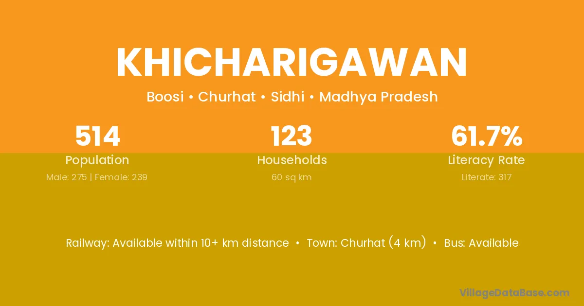 Khicharigawan village has a total population of 514 people, of which 275 are males and 239 are females.