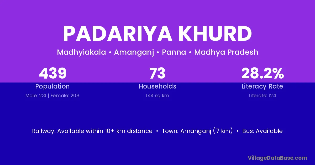 Churhat (28 km) is the nearest town to Padariya Khurd village for major economic activities and is located approximately 28 km away.