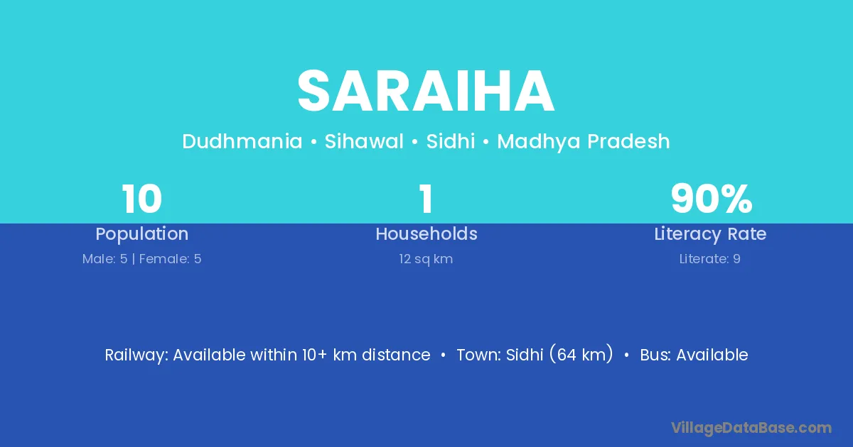 Churhat (22 km) is the nearest town to Saraiha village for major economic activities and is located approximately 22 km away.