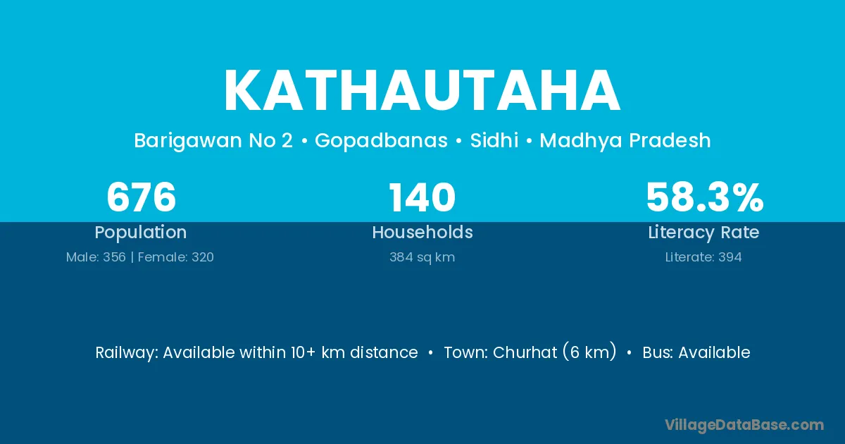 Churhat (6 km) is the nearest town to Kathautaha village for major economic activities and is located approximately 6 km away.