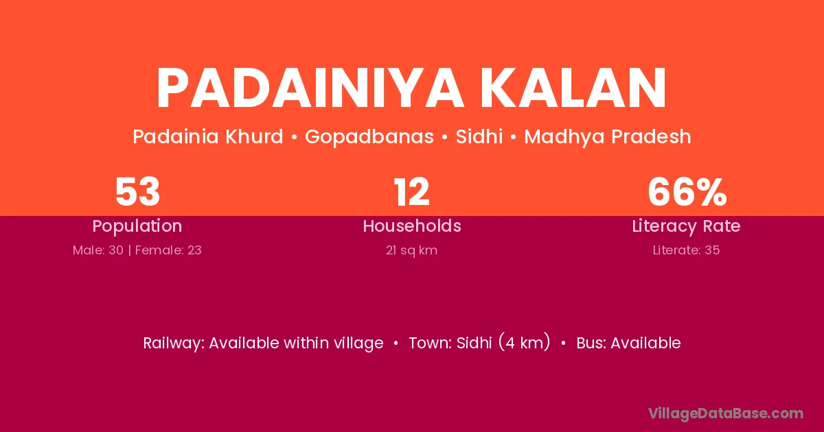 Padainiya Kalan village has a total population of 53 people, of which 30 are males and 23 are females.